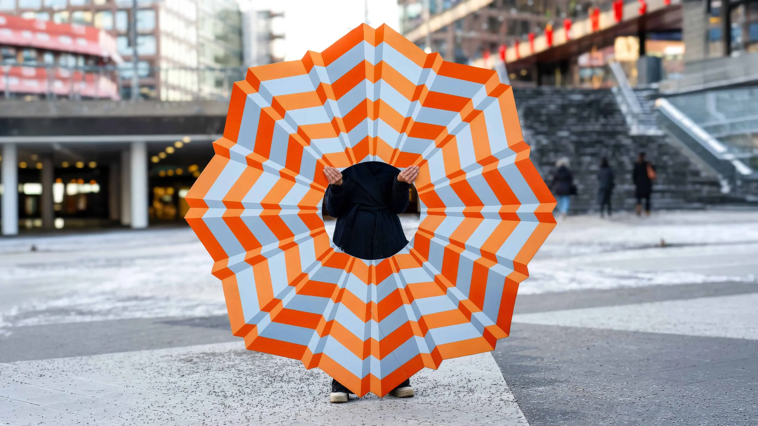 The design consists of 14 unique pillars scattered under the Sergel Arcade at Sergels Torg, on display from November 2024 until April 2025. Forex plates, 200 cm in diameter, are wrapped in vinyl film, and “the collar” is made of sheet metal, also foiled with vinyl film.Comissioned by the city of Stockholm.